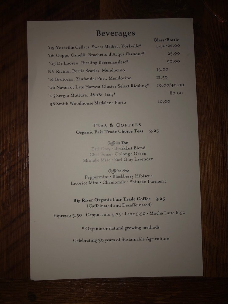 Wine enthusiasts will appreciate the carefully curated list, featuring local selections, such as the NV Roederer Estate Brut from Anderson Valley — a crisp companion to any meal. This thoughtful pairing enhances the dining experience, making it even more enjoyable.